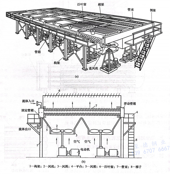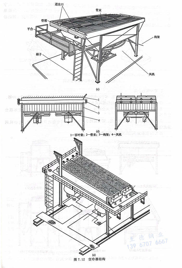 空气冷却器主要由管束、通风机、构架及百叶窗等组成,如图7.12所示。