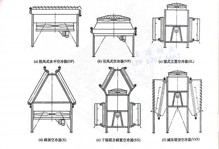 ③. 按空冷器冷却方式分类:干式全冷器:湿式空冷器;干湿联合空冷器;两侧喷淋联合空冷器。