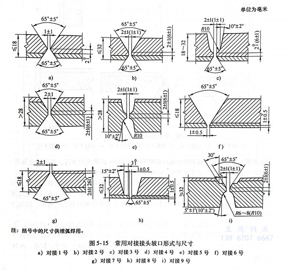 常用对接接头和角接接头的坡口形式及尺寸如图 5-15 和 图 5-16 (摘自GB/T 13148-2008)所示。
