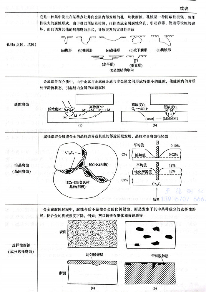 局部腐蚀又叫非均匀腐蚀,其危害性远比均匀腐蚀大,因为均匀腐蚀容易被发觉,容易设防,而局部腐蚀则难以预测和预防,往往在没有先兆的情况下,使金属构件突然发生破坏,从而造成重大火灾或人身伤亡事故。局部腐蚀很普遍,据统计,均匀腐蚀占整个腐蚀中的17.8%,而局部腐蚀则占80%左右。见表8.1.1。