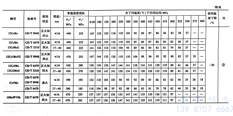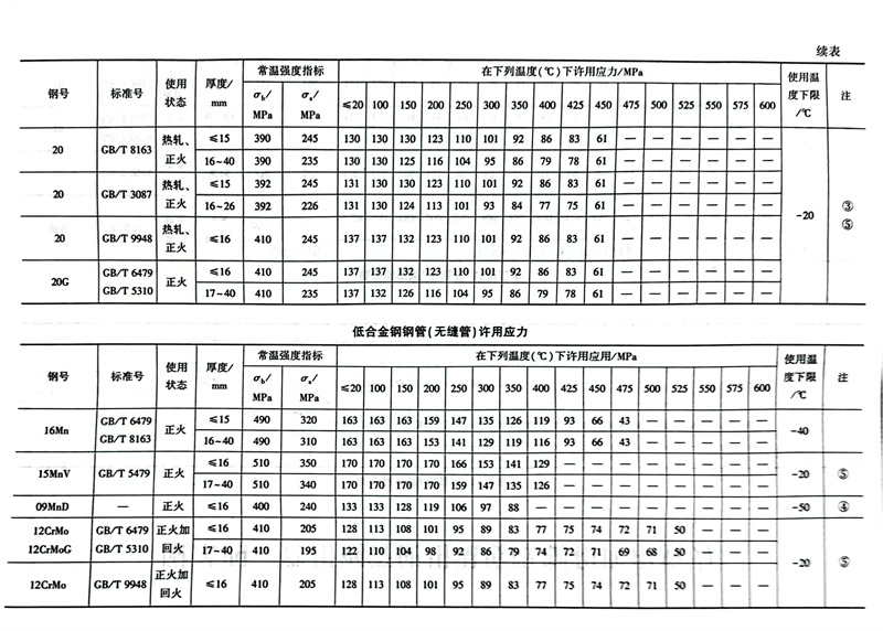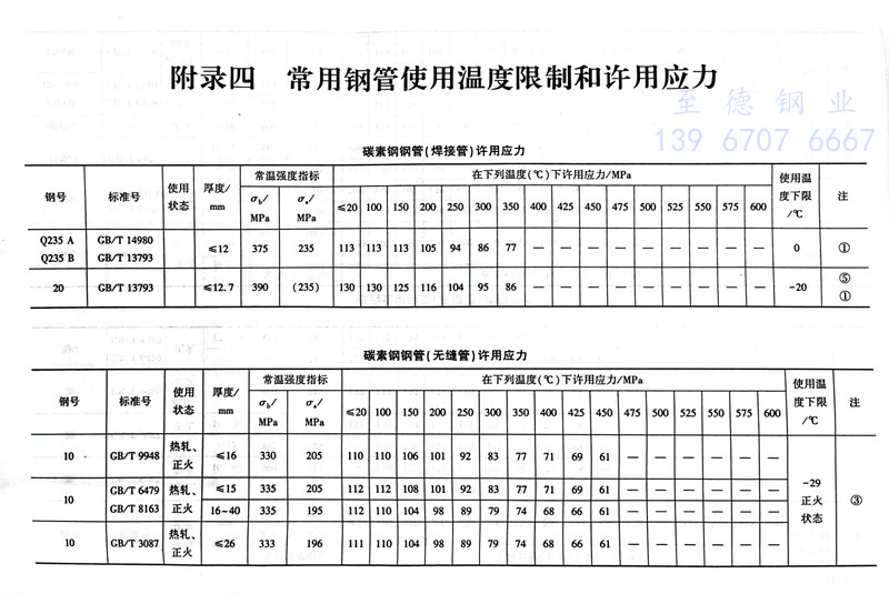 常用钢管使用温度限制和许用应力参照表