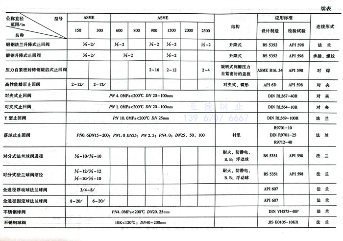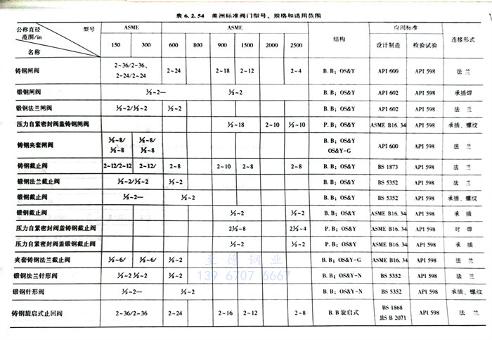 1. 美洲标准阀门型号、规格和适用范围见表6.2.54。