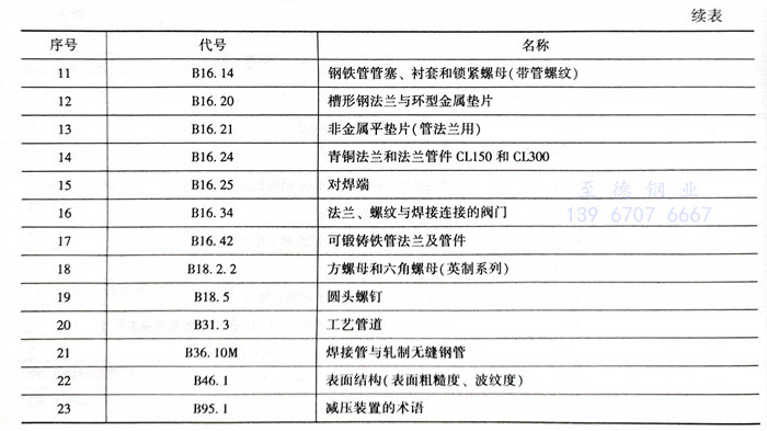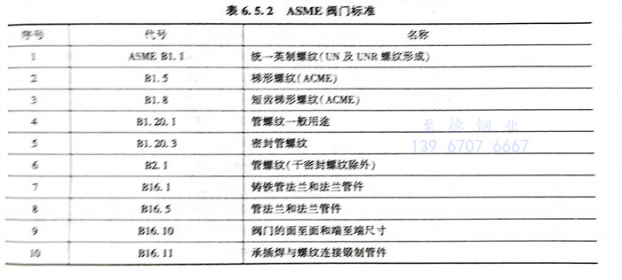 美国机械工程师协会 ASME 阀门标准见表6.5.2。