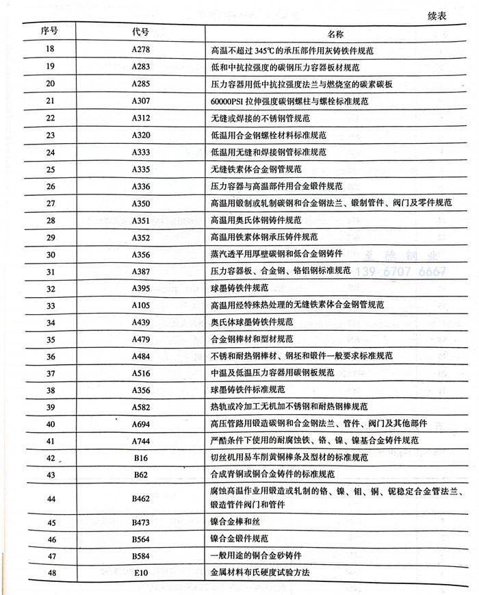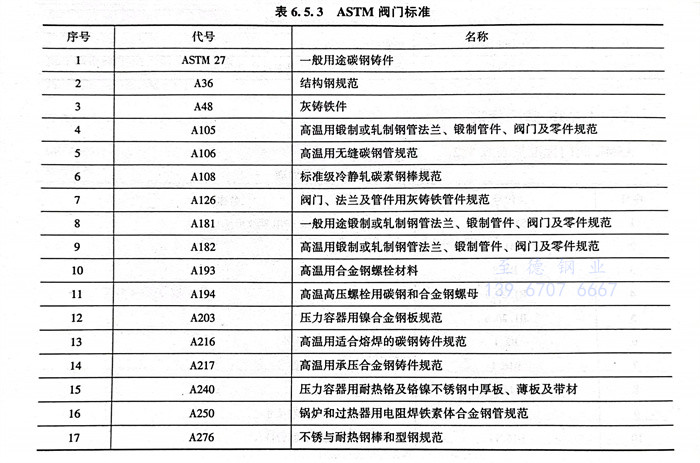 美国材料实验协会 ASTM 阀门标准见表6.5.3。