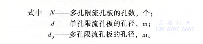 管道公称直径≤150mm的管路,通常采用单孔孔板;150mm时,采用多孔孔板。多孔孔板的孔径(do),一般可选用12.5mm,20mm,25mm,40mm。在计算多孔孔板时,首先按单孔孔板求出孔径(d),然后按式(6.6.1)求取选用的多孔孔板的孔数(N)。
