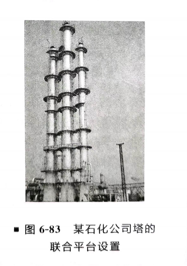 ③. 联合平台应考虑各塔、架之间的热胀及其移动因素,留有缝隙,加入适当的销子。塔身用法兰连接时,应在法兰下侧设置平台,平台面与法兰的距离不宜大于1.5m。