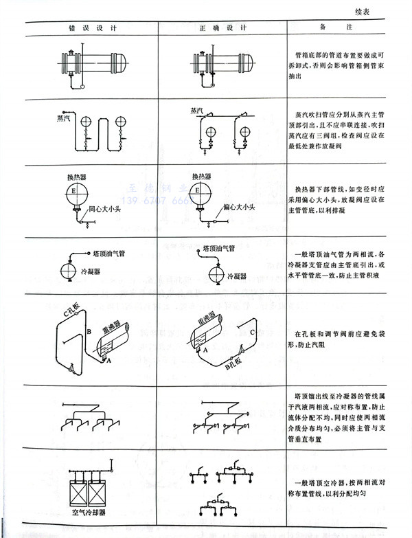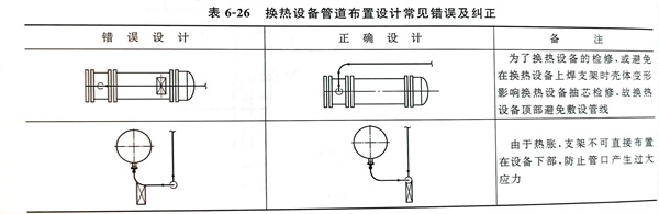 不锈钢换热设备管道布置设计常见错误及纠正见表 6-26
