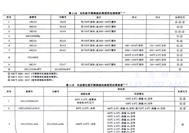 马氏体不锈钢板和沉淀硬化型不锈钢板典型热处理制度