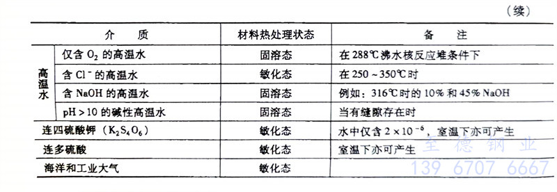 表2-1列出了引起Cr-Ni奥氏体不锈钢腐蚀的介质和条件。