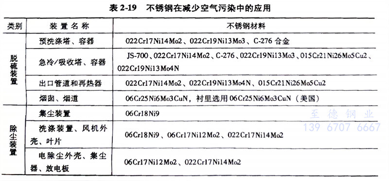 目前全世界排放的二氧化硫,每年约1.4亿吨,严重损害人的身心健康。冶理二氧化硫的装置大量使用不锈钢制造,见表2-19。