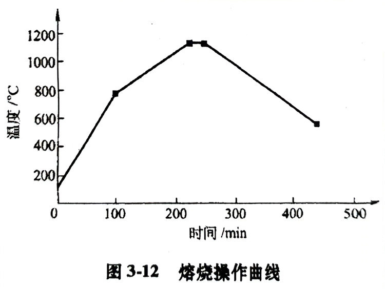 采用刷涂或喷涂的方法将料浆涂覆在不锈钢基体上,室温晾干,150℃烘干,在空气中熔烧,其温度和时间的熔烧曲线见图3-12,其涂层性能和形貌见表3-37。