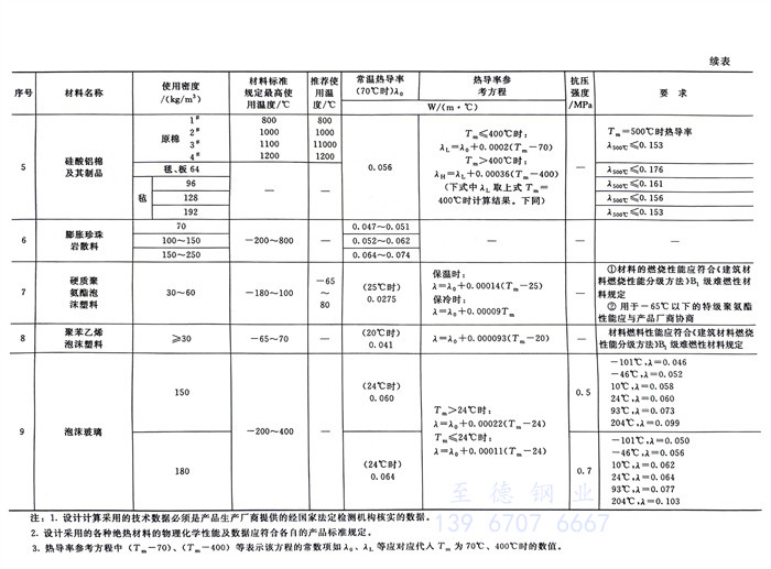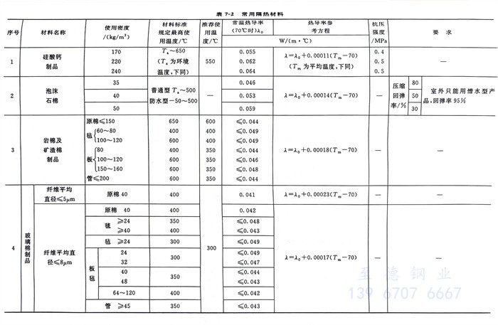 ①. 保温材料在平均温度低于或等于350℃时,其热导率不得大于0.1212W/(m·℃)),保冷材料在平均温度低于27℃时,其热导率不应大于0.064WW/(m·