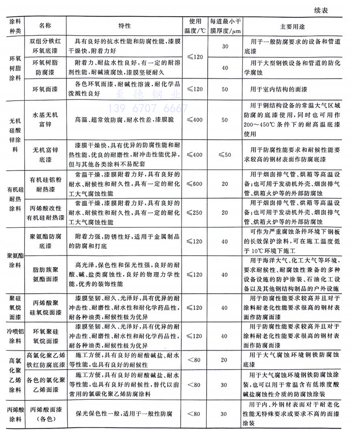 压力管道防腐常用涂料的性能及用途见表 7-11
