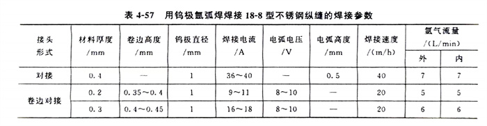 在生产实践中,对于厚为10mm的0Cr19Ni9不锈钢板可实现单面焊双面成形,其焊接参数见表4-61。从表中可以看出,随着间隙b减少,为了保证焊透,焊接电流要适当加大才能满足要求。