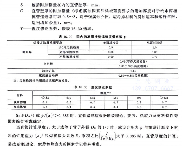 b. 剧烈循环条件或A1类流体的管道,采用不锈钢管子及对焊管件时,不应小于表16.32所列的厚度。