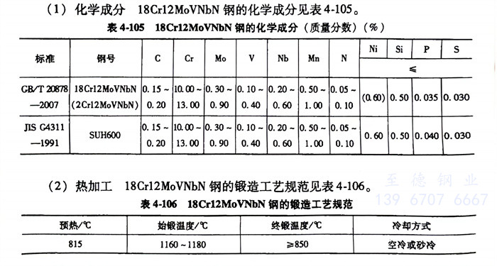 18Cr12MoVNbN(2Cr12MoVNbN)SUH600不锈钢的锻造工艺规范见表4-106。