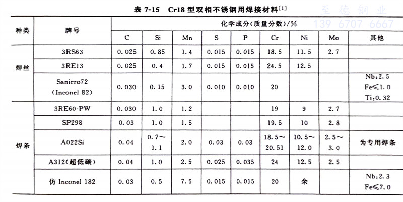 Cr18型双相不锈钢的焊接性良好。热裂纹倾向低,脆化倾向小。薄板和冷拉不锈钢管适宜采用GTAW(TIG)法焊接,填丝是必要的。中板可用SMAW等法焊接,单面焊时,根部焊道建议采用TIG法焊接,一般不需要焊前预热和焊后热处理。为防止接头和HTHAZ出现单相铁素体组织,焊接时注意控制热输入和道间温度。