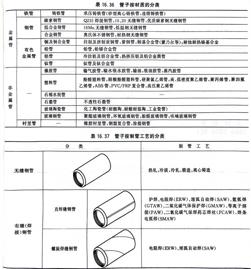 钢管标准可以分为Pipe管标准、Tube管标准和机械结构钢管标准。Pipe管与Tube管的比较见表 16.38 。