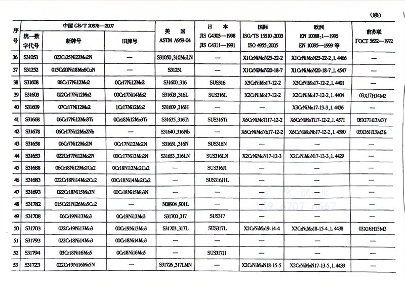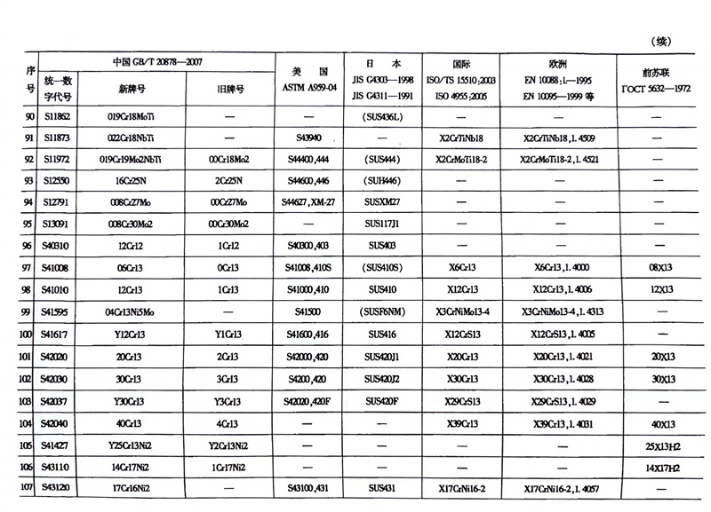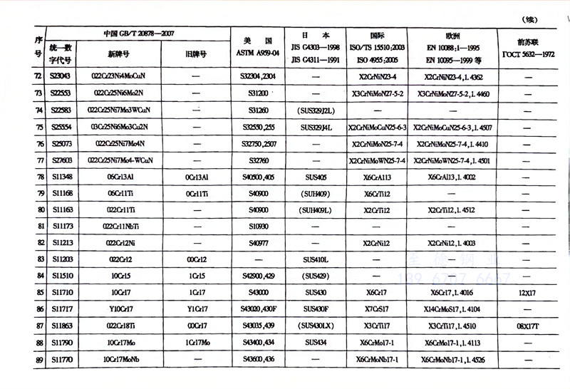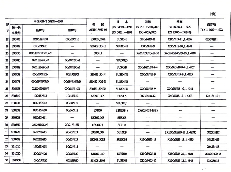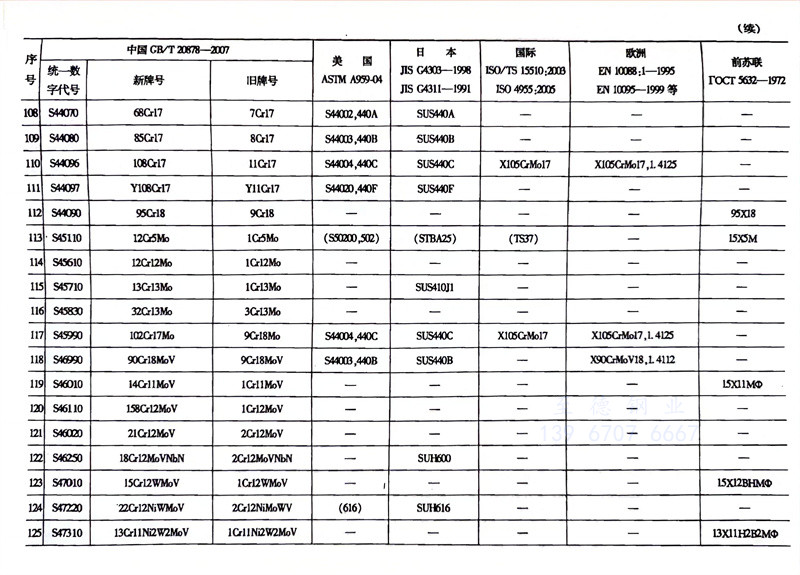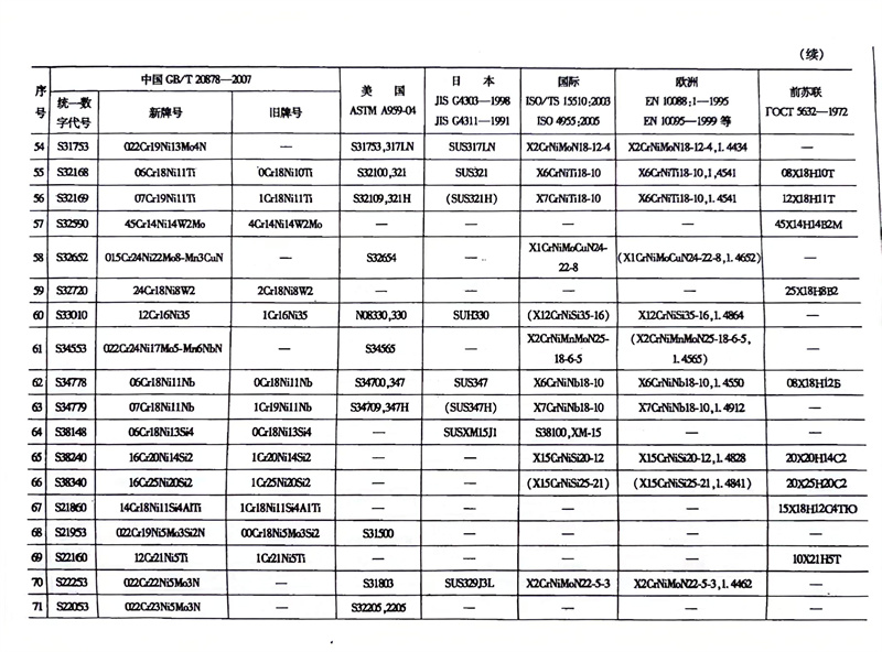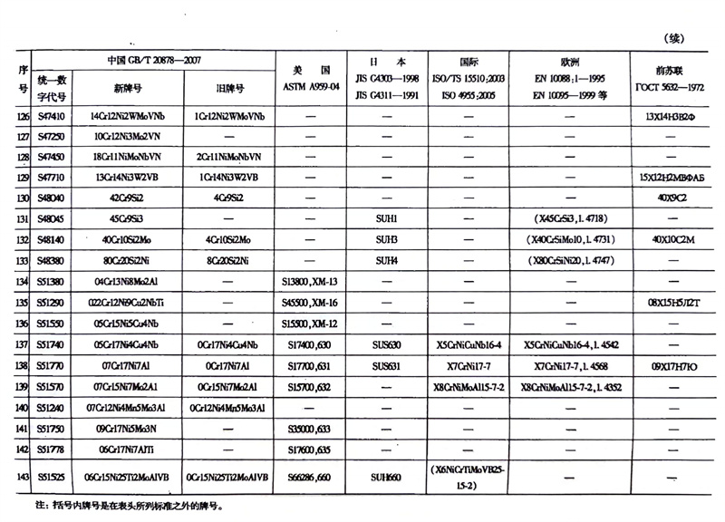 各国不锈钢和耐热钢牌号对照表