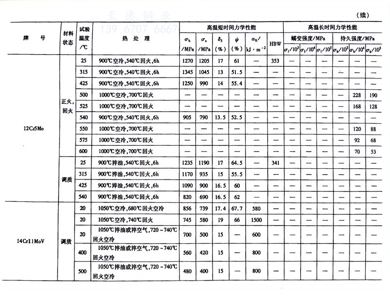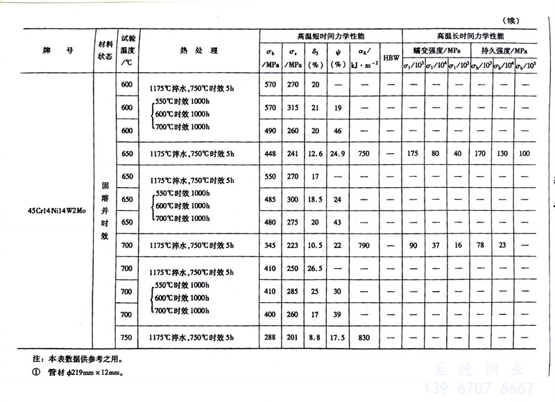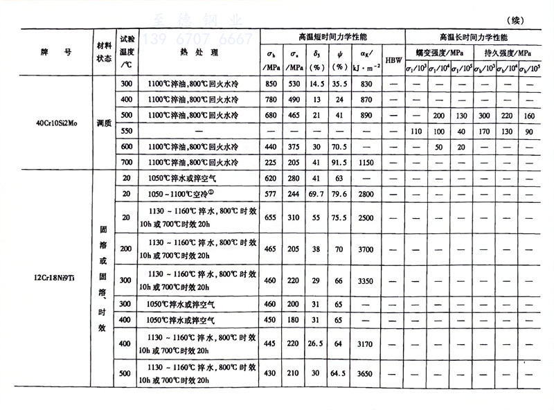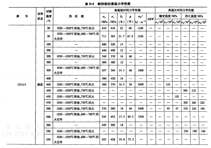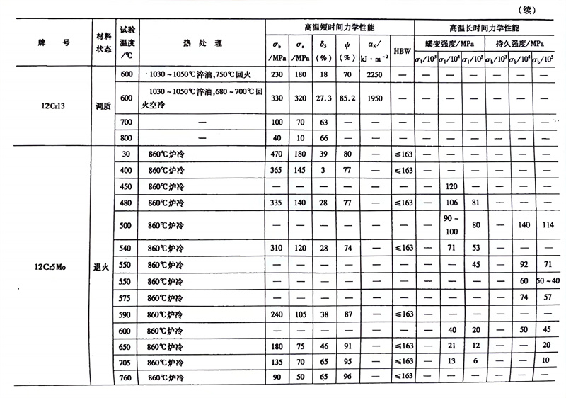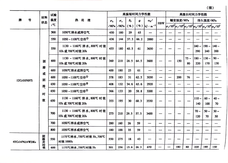 耐热钢的高温力学性能对照表